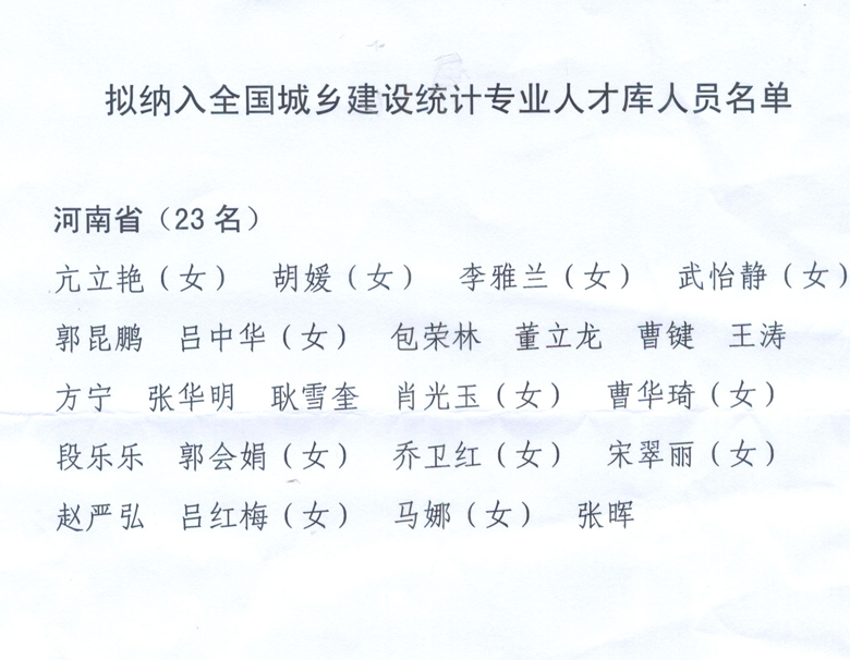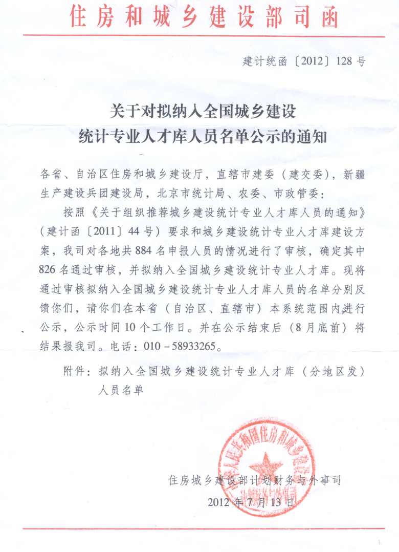 关于对拟纳入全国城乡建设统计专业人才库人员名单公示的通知